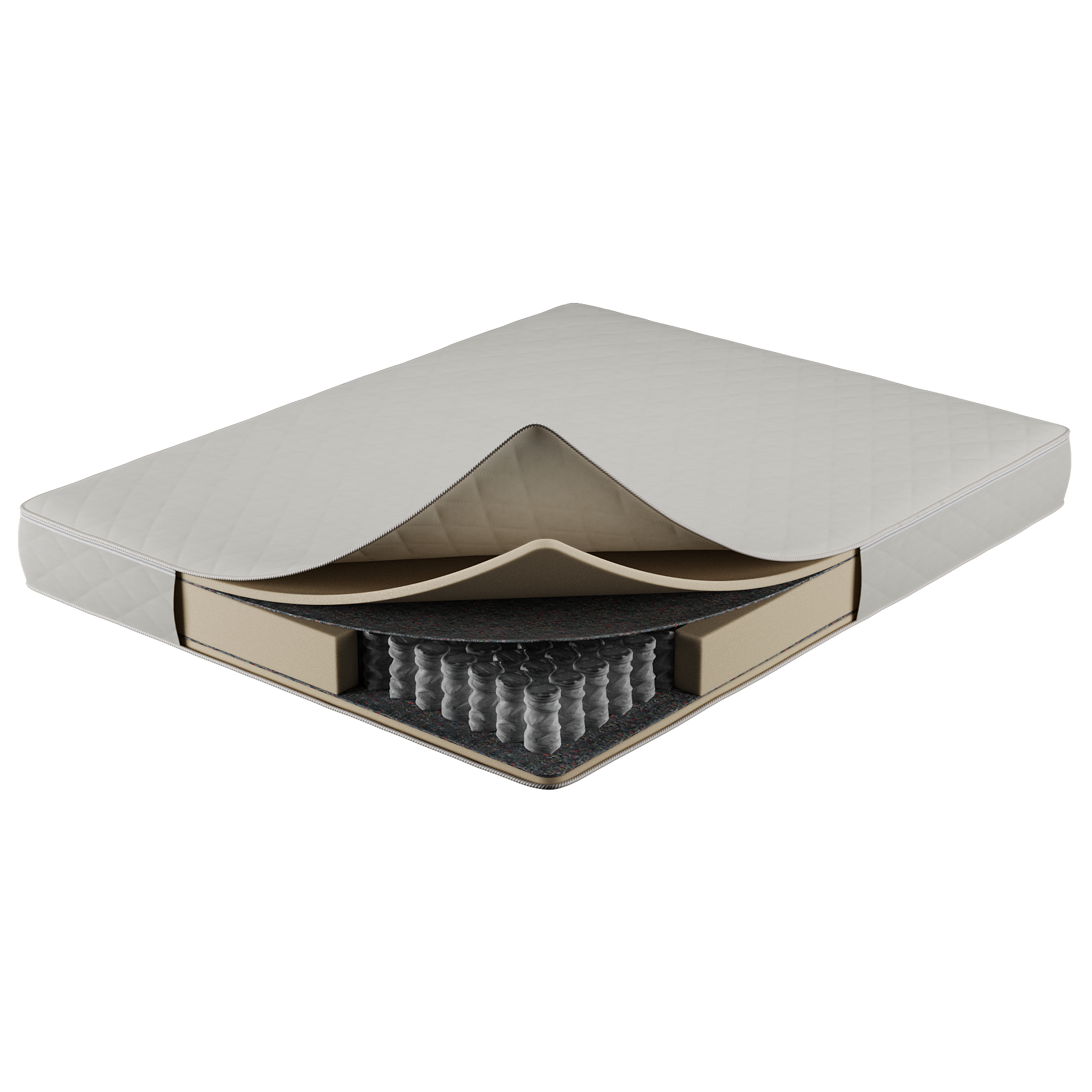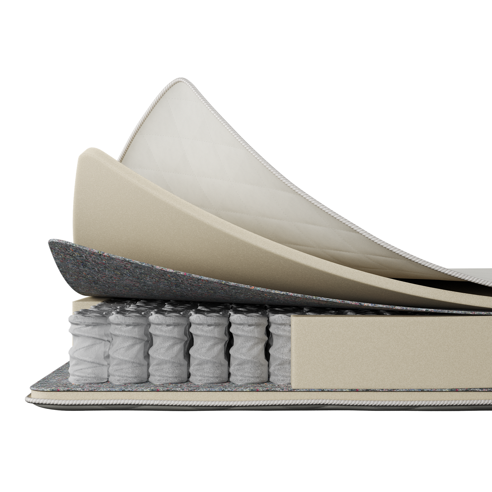 Настилочный слой матраса состоит из двух компонентов. Жесткий войлок весом 400 г/м2 обеспечивает дополнительную поддержку и устойчивость матраса, а 2-сантиметровый слой ППУ (полиуретановой пены) добавляет комфорта и мягкости. Эта комбинация слоев создает приятное ощущение и дополнительную амортизацию.